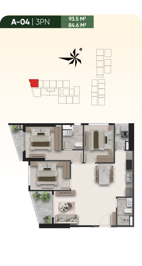 - Căn 3PN (81.7m² – 97.7m²): Vị trí góc đắc địa, view trực diện sông Sài Gòn. Không gian sinh hoạt chung rộng lớn cho gia đình đa thế hệ. Khan hiếm với chỉ 3 căn/tầng.