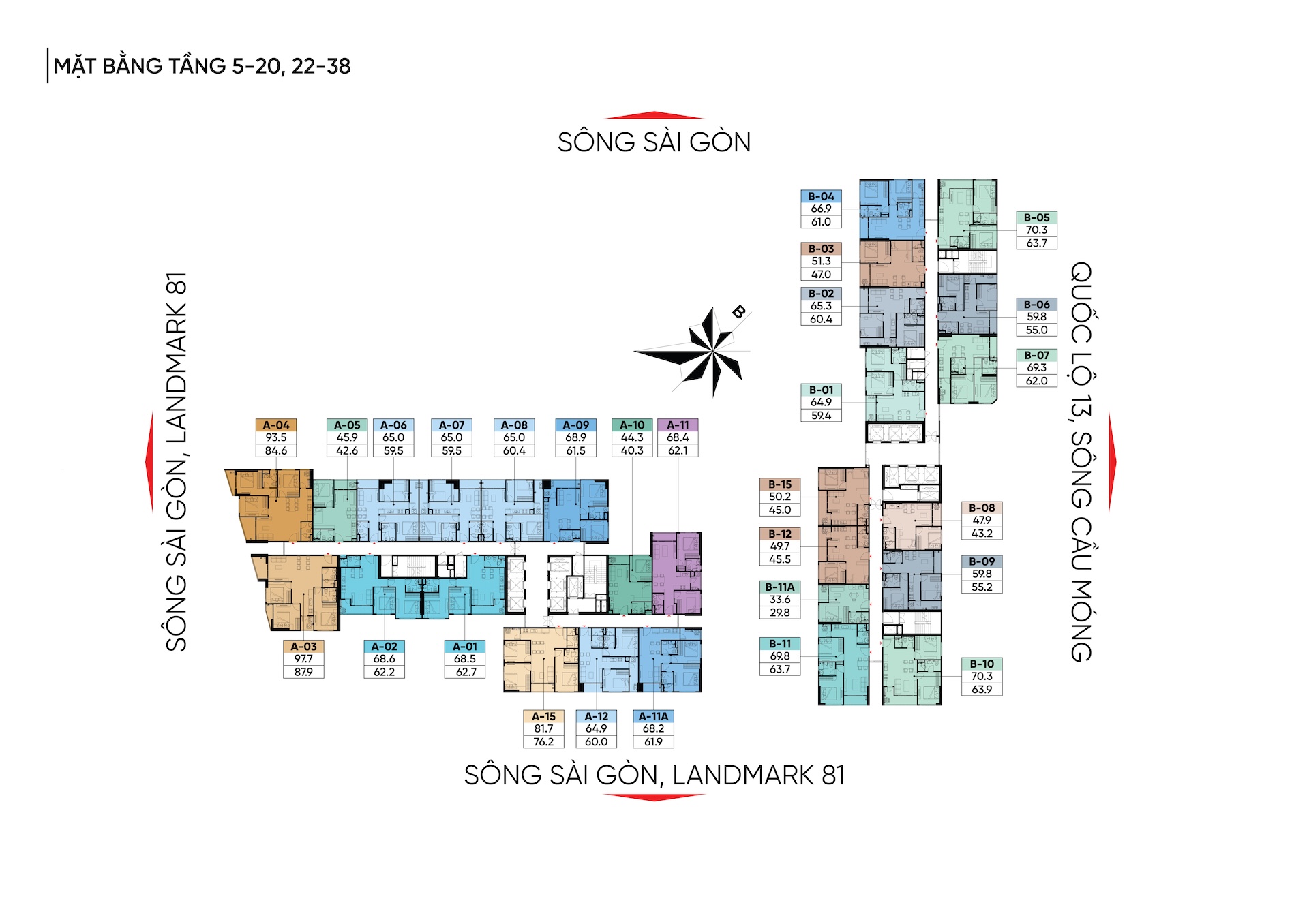 - Hai tháp A và B được đặt vuông góc với nhau, triệt tiêu góc khuất, giúp 100% căn hộ không bị che chắn tầm nhìn, đón trọn gió trời và ánh sáng tự nhiên.