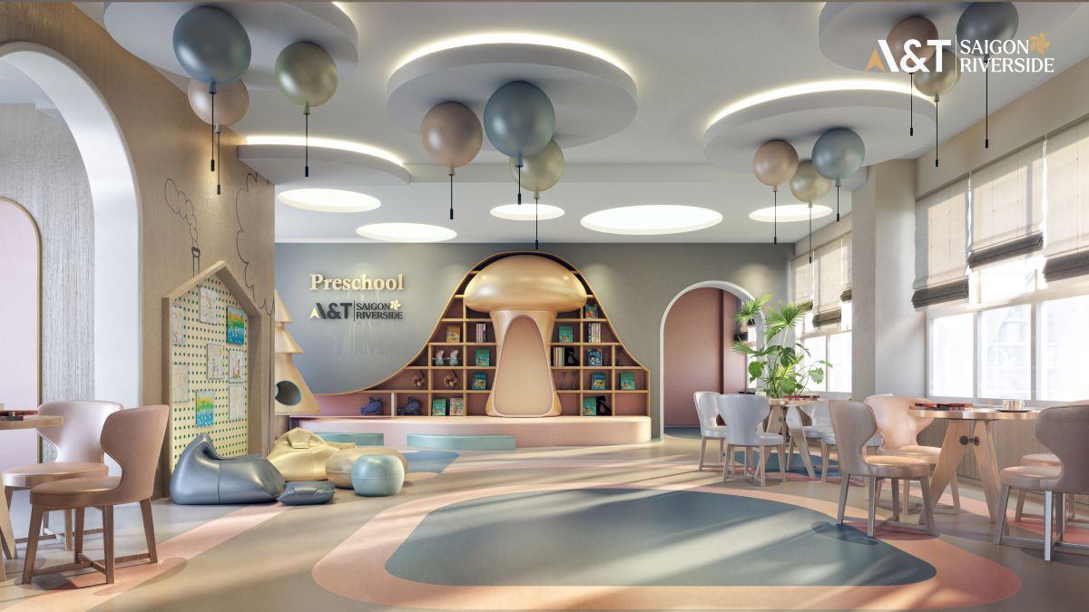 - Khối đế thương mại & Giáo dục (Tầng 1 – 3): Sảnh đón khách sang trọng, chuỗi Shophouse dịch vụ sầm uất. Đặc biệt, khu vực nhà trẻ quy mô lớn (hơn 1.100m2 thông tầng 1 & 2) mang lại sự an tâm tuyệt đối cho các gia đình trẻ.