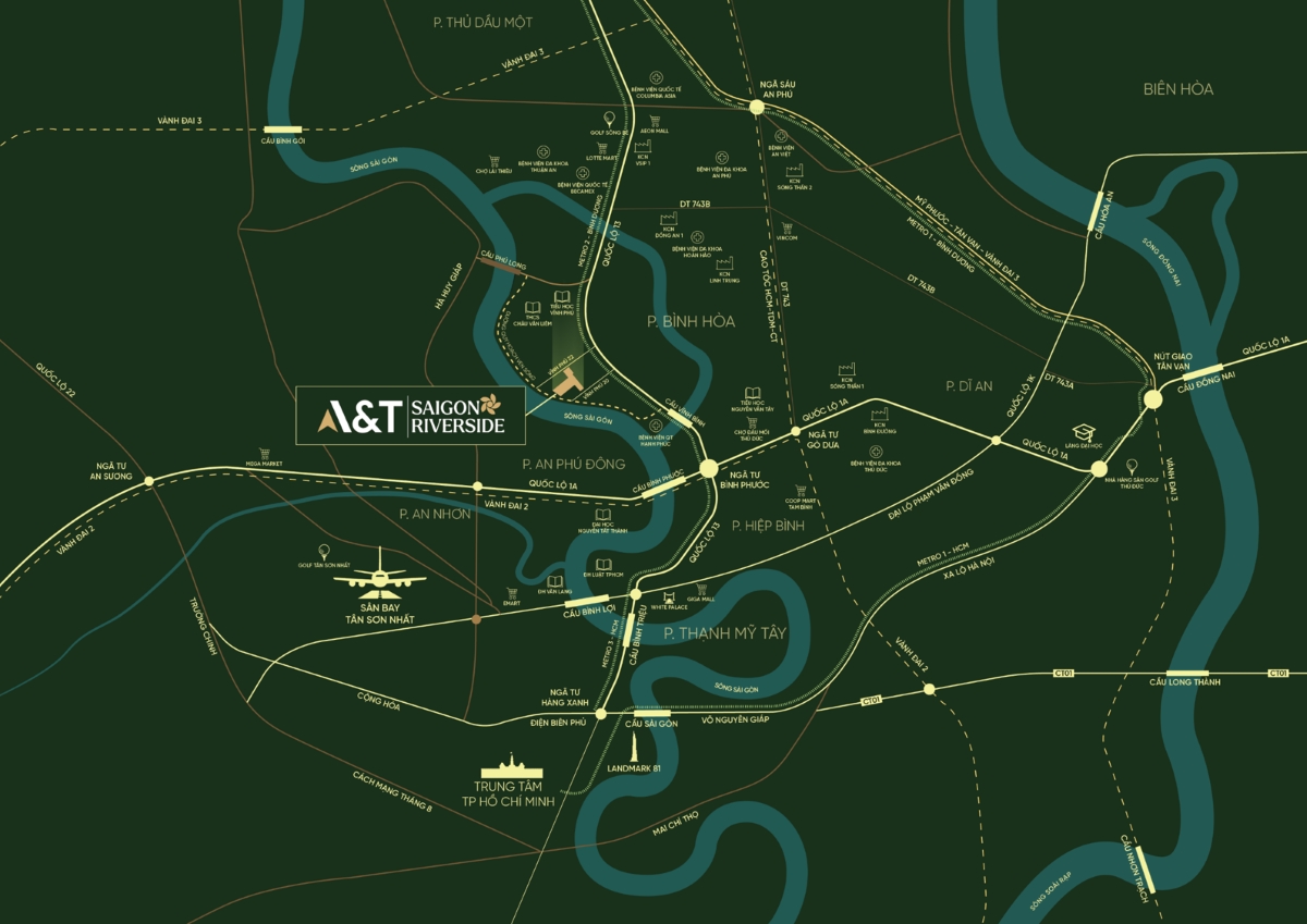 Dự án A&T Saigon Riverside sở hữu quỹ đất hiếm hoi mặt tiền sông Sài Gòn. Vị trí toạ lạc ngay khu vực cửa ngõ giao thương huyết mạch Đông Bắc Sài Gòn, tạo nên một tâm điểm kết nối hoàn hảo.