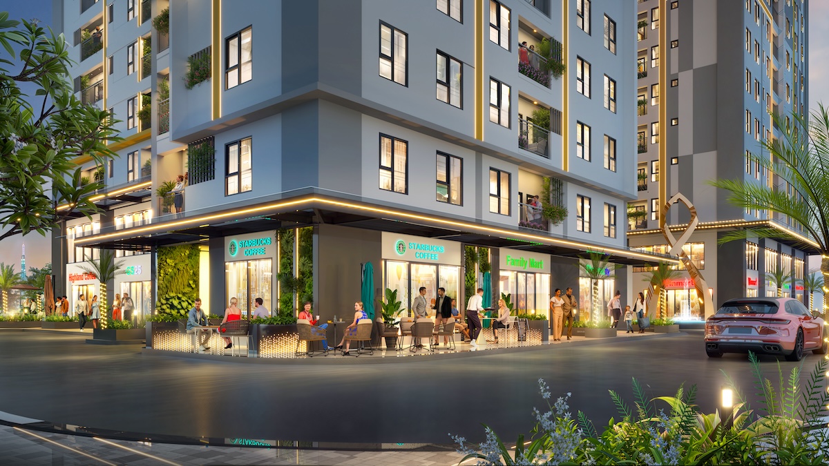 - Trung tâm thương mại khối đế, siêu thị mini, khu BBQ ngoài trời.